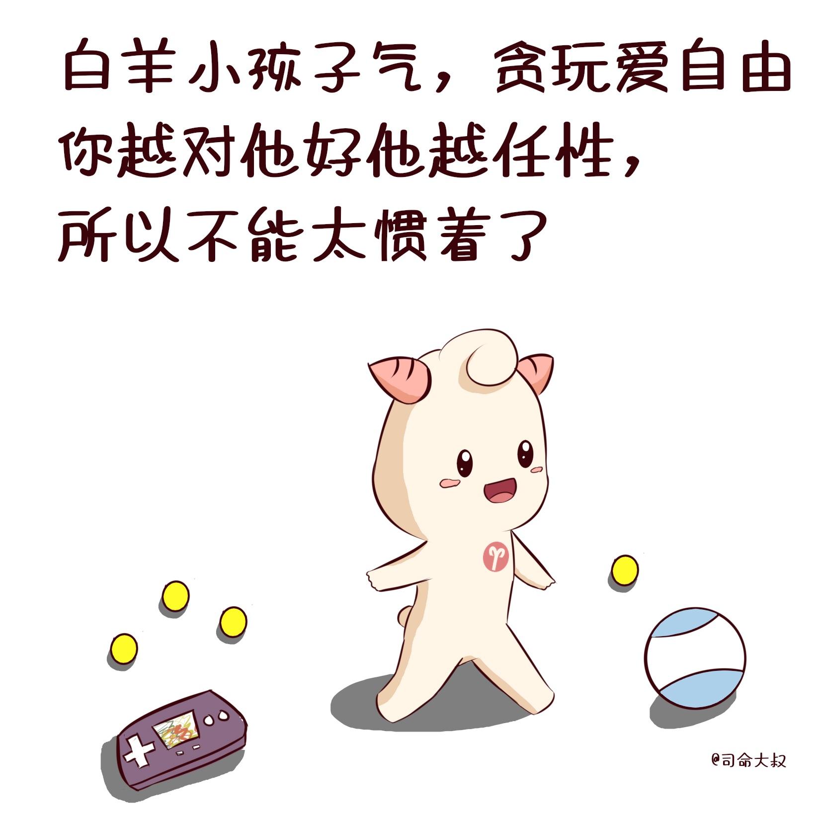 1.白羊座是冲动型星座,他们在感情上也是这样,所以他们最大的问题是沉不住气,做什么事情都过度,不知道适可而止,在恋爱里,不懂得适可而止还是很可怕的,比如你说东西好吃,他天天给你买一筐,你说这个地方好玩,他天天带你去。2.白羊